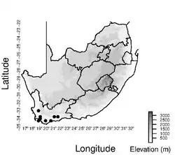 The known distribution of S. brunnescens is from the Rooi Els and Worcester areas in the west to the Langeberg Mountains to the east of the Western Cape Province.[1]