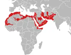 Northwest India, Afghanistan (Leviton 1959: 461), Pakistan, south Turkmenistan, Western Sahara, Tunisia, Morocco, Algeria, Libya, Egypt, Jordan, Palestine, Israel, Mali, Mauritania, Nigeria, Sudan, Ethiopia, Eritrea, Somalia, Saudi Arabia, United Arab Emirates, Oman,[5] Syria, kenya, Iraq, Iran (Kavir oDesert), and Yemen.