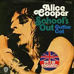"School's Out" is a song first recorded as the title track of Alice Cooper's fifth studio album. It was released as the album's only single on April 26, 1972. "School's Out" was Alice Cooper's biggest international hit and it has been regarded as their signature song[1] and reached number seven on the Billboard Hot 100, number three in the Canadian RPM 100 Singles chart, number two on the Irish Singles Chart and number one on the UK Singles Chart.
