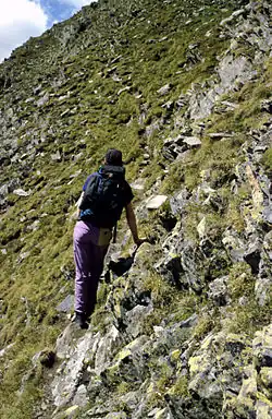 Schrofen differs from trackless terrain in that hands are needed in order to negotiate it. Often there are route markings that only indicate a rough direction.[1]