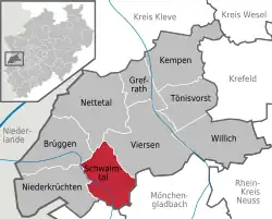 Viersen (district)North Rhine-WestphaliaKleve (district)Wesel (district)DuisburgKrefeldRhein-Kreis NeussMönchengladbachHeinsberg (district)NetherlandsNettetalTönisvorstGrefrathNiederkrüchtenBrüggenViersenWillichKempenSchwalmtal