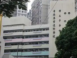 In 1946 the missionary bishop Ronald Hall proposed to various trade unions that they should band together to form a society for the education of workers' children. The "Education Advancement Society for the Children of Workers in Hongkong and Kowloon" was thus formed.[2] The society opened seven schools in 1947, at Mong Kok, Wan Chai, Apliu Street (Sham Shui Po), Hing Man Street (Shau Kei Wan), Sai Wan Ho, Jaffe Road, and Portland Street.[3] The Mongkok school was housed in government premises and had 556 students in April 1947.[4] More schools opened in 1948. These schools were often not in permanent premises but in rented flats. The government was still working to rehabilitate schools ruined during the Japanese occupation of World War II.