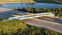 Branching out of the park is an abandoned overpass, spanning over the nearby Interstates 70 and 71. In 2020, a 400-foot mural was painted on its roadbed, reading "We are stronger together", in reference to the ongoing COVID-19 pandemic.[9]
