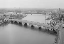 The set of bridges was listed on the Columbus Register of Historic Properties in 1983. The bridges are also part of the Columbus Civic Center Historic District, deemed to be eligible for the National Register of Historic Places.[1] The buildings were noted for their classical and Art Deco designs, and as part of the remade riverfront after the Great Flood of 1913.[2]