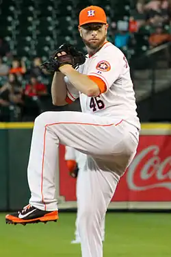 Within a month Benson was injured, however, and Feldman took his place in the rotation on April 25. "I'm excited", said Feldman. "I love starting."[51] At the suggestion of pitching coach Mike Maddux, he changed his windup to a full windmill. He remained in the rotation thereafter.[52][53] In early May, Washington noted: "He has real life on his fastball, his slider is harder than it has been, his breaking ball is much crisper, and he's getting a good feel for his changeup. He's got four pitches he can throw over the plate."[54]