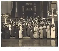 Scottish Federation of Women's Suffrage Societies is a Scottish organisation for women's suffrage.[1] It was established in 1910 as an affiliate of the National Union of Women's Suffrage Societies in London for the constitutional suffrage campaign in Scotland.[1] Those activists largely following peaceful methods were nicknamed as Suffragists.[2]