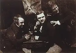 In photography, genre art was normally the recreation of scenes and tableaux using paid or amateur actors to reproduce scenes.[16] Genre art was a major influence on early photography, which developed rapidly in Scotland.[16] Pioneering photographers from Scotland included chemist Robert Adamson (1821–48) and artist David Octavius Hill (1821–48), who as Hill & Adamson formed the first photographic studio in Scotland at Rock House in Edinburgh in 1843. Their output of around 3,000 calotype images in four years are considered some of the first and finest artistic uses of photography.[17] Images produced by them that were influenced by genre art included their Edinburgh Ale (1843–46), where the poses of three drinking companions are based on scenes from Dutch art.[16] Adamson trained Thomas Roger (1833–88) of St. Andrews, who was one of the first commercial photographers and beside commercial portraits, produced many genre style compositions.[18] Other pioneers included Thomas Annan (1829–87), whose photographs of the Glasgow slums were among the first to use the medium as a social record.[17] In the 1850s amateur photographer Mary Jane Matherson took her camera outside to create compositions that can be described as genre art, including A Picnic in the Glen and An Angler at Rest.[19]