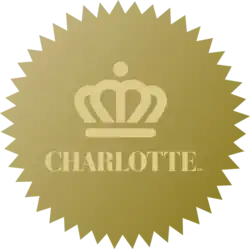 The second iteration of the seal was much simpler in design, simply featuring the city's service mark atop a golden seal. On official documents, a green ribbon is typically found below it. The crown references the city's nickname of The Queen City, which references its namesake, Queen Charlotte. It also represents unity of the city's agencies as they work in unison for the good of its residents.[2]