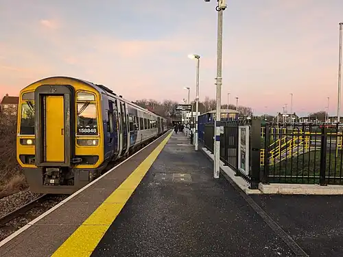 The main construction phase began in autumn 2022, with the line (partially) and station reopening on 15 December 2024.[34] Services are expected to call additionally at Bedlington, Blyth Bebside and Northumberland Park from 2025.