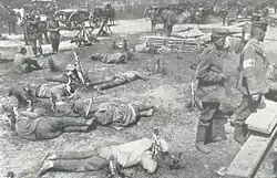 June 12, 1915 the Bolimov sector. Russian soldiers who died from chlorine, whose corpses were transferred by the Germans to their rear.