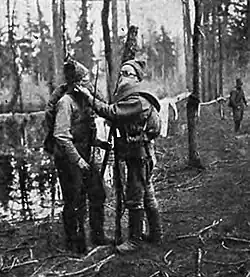 Even though the Russians suffered very heavy losses, german troops made only minor progress, not completing the tasks set.[22] The fierce resistance of the Russian troops doomed the German command to failure.[23][24] A German soldier reflected a remarkable case that a Russian officer during the gas attacks, instead of retreating, took up a shooting position and fired at the Germans to the last, even after death he did not let go of the rifle.[23] General Falkenhayn was forced to state that operations against the Warsaw salient were not producing the desired result and that the German advance was difficult due to fierce resistance on their way.[25]