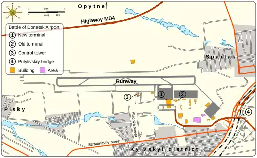 - ^ "Defense Ministry: Militants blow up Donetsk airport runway". KyivPost. 20 January 2015. Retrieved 2 February 2015.