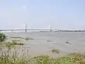 The Second Wuhan Yangtze River Bridge (Chinese: 武汉长江二桥, Wuhan Changjiang Er Qiao) is a bridge across the Yangtze River in Wuhan, Hubei province, China. It is located northeast (downstream) of the historic central area of the city's Hankou District and is the northern crossing for the Inner Ring Road. It is a cable-stayed bridge built of pre-stressed concrete, and has a central span of 400 metres (1,300 ft).[1] It is 4.678 kilometres (2.907 mi) in length (including the 1,876-metre (6,155 ft) main span) and is 26 metres (85 ft) wide. Its main bridgeheads are 90 metres (300 ft) high each, pulling 392 thick slanting cables together in the shape of double fans, so that the central span of the bridge is well-balanced on the piers and the bridge's stability and vibration resistance are ensured.