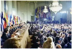 Wilson repeated his Fourteen Points at the Paris Peace Conference, where he proposed a commitment to "open covenants ... openly arrived at" and the elimination of "private international understandings of any kind [so that] diplomacy shall proceed always frankly and in the public view".[19] The Wilsonian position was codified in Article 18 of the Covenant of the League of Nations, which mandated that all League of Nations members states register every treaty or international agreement with the League secretariat and that no treaty was binding unless so registered.[19][13][21] That led to the rise of the treaty registration system "although not every treaty that would have been subject to registration was duly registered".[13]