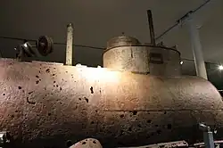In April 2002 the wreck of U-5095 was recovered by the Royal Dutch Navy and a civilian salvage team lying buried beneath a beach at Egmond aan Zee in the Netherlands, after having been run aground there by its crew in February 1945, and the remains are now on display at the IJmuiden bunker museum.[8] Its two onboard torpedoes were found to be still active and their warheads were separated from their delivery systems and control-detonated at sea.[9]