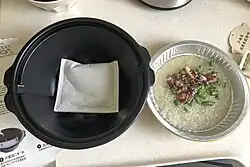 Self-heating rice with quicklime and water as heating source, taken before adding water to quicklime