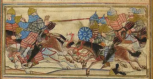 A miniature depicting the war with the Oghuz during the reign of Sultan Sanjar. Jami al-Tawarikh, TSMK, H.1653 (dated 1314)