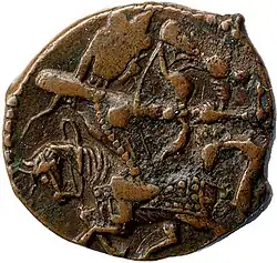 In 1040, at the Battle of Dandanaqan, Seljuks decisively defeated Mas'ud I of Ghazni, forcing him to abandon most of his western territories.[32] Afterwards, Turkmens employed Khorasanians and set up a Persian bureaucracy to administer their new polity with Tughril as its nominal overlord.[33] By 1046, Abbasid caliph al-Qa'im had sent Tughril a diploma recognizing Seljuk rule over Khurasan.[34] In 1048–1049, the Seljuk Turks, commanded by Ibrahim Yinal, uterine brother of Tughril, made their first incursion into the Byzantine frontier region of Iberia and clashed with a combined Byzantine-Georgian army of 50,000 at the Battle of Kapetrou on 10 September 1048. The devastation left behind by the Seljuk raid was so fearful that the Byzantine magnate Eustathios Boilas described, in 1051–1052, those lands as "foul and unmanageable... inhabited by snakes, scorpions, and wild beasts." The Arab chronicler Ibn al-Athir reports that Ibrahim brought back 100,000 captives and a vast booty loaded on the backs of ten thousand camels.[35]