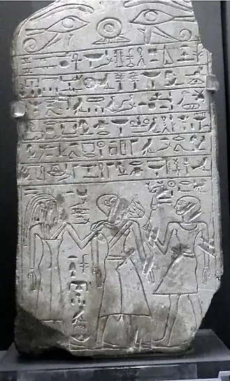 2. ^ J. Bourriau, Three Monuments from Memphis in the Fitzwilliam Museum, The Journal of Egyptian Archaeology, Vol. 68, (1982), pp. 51-59; Geoffrey T. Martin: Stelae from Egypt and Nubia in the Fitzwilliam Museum Cambridge, c. 3000 BC–AD 1150, Cambridge 2005, p. 48–49, no. 29, ISBN 0-521-84290-5