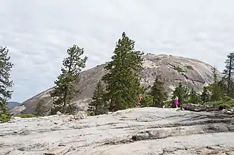 Sentinel Dome is known for a Jeffrey Pine that grew from its peak. The pine was photographed as early as 1867 by Carleton Watkins, and was the subject of a well-known photograph by Ansel Adams. The tree died during the drought of 1976,[8] but remained standing until August 2003.[8]