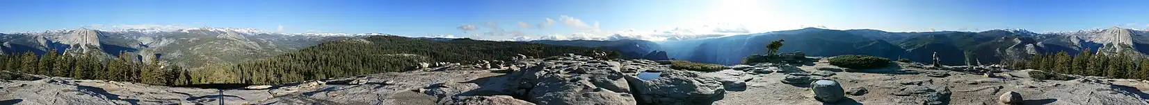 The view from the top offers a 360 degree view of Yosemite Valley and surroundings. One can see Half Dome, El Capitan, Yosemite Falls, North Dome, Basket Dome, and much more. Sentinel Dome provides a 360 degree view of the night sky and it and nearby Glacier Point are popular places for stargazing.[4]