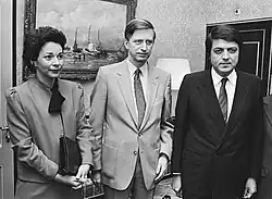 In 1977 Ramírez became head of the "Group of Twelve", a group of prominent intellectuals, priests, businesspeople, and members of civil society who publicly stated their support for the Frente Sandinista de Liberación Nacional (FSLN) in its struggle to topple the Presidency of Anastasio Somoza Debayle.[2] The Group were forced into exile in Costa Rica, but their return was one of the key events heralding the end of the Somoza government.[2] With the triumph of the Revolution in 1979, he became part of the Junta of the Government of National Reconstruction, where he presided over the National Council of Education. He was elected vice-president of Nicaragua in 1984 and was sworn in 1985.