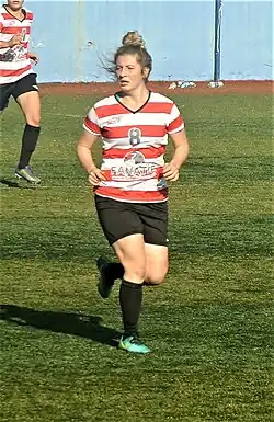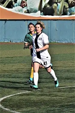 Serra Çağan obtained her license on June 10, 2008, for her hometown club İzmit Saraybahçe Belediyespor.[1] After appearing in eight matches in one season of the Turkish Women's Second League, she transferred to İzmit Belediyespor, which was in the Regional League. At the end of the 2009–10 season, her team was promoted to the Second League, and the next season to the First League. She capped in 50 matches scoring 21 goals in three seasons. In the 2012–13 season, she was with İzmit Çenesuyu Plajyoluspor in the Second League again, where she netted 14 goals in 14 matches. For the next season, she signed with Karşıyaka Koleji Spor, another İzmit-based club.[2][3][4] Çağan played in 33 games and scored 19 goals in two seasons between 2013 and 2015.[1]