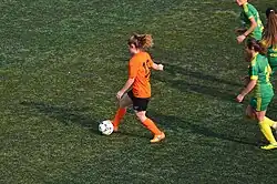 Serra Çağan driving the ball for 1207 Antalya Muratpaşa Belediye Spor in the 2015–16 season's away match against Kireçburnu Spor.
