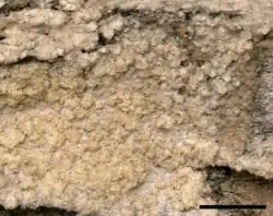 | Holotype specimen of Serusiauxia inexpectata, showing its sorediate thallus; scale bar = 2.5 mm | |