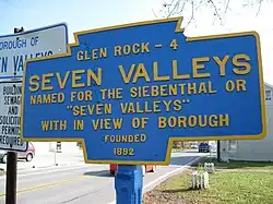 Seven Valleys is a borough in York County, Pennsylvania, United States. The population was 480 at the 2020 census.[3] It is part of the York–Hanover metropolitan area.