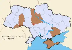 4. ^ "Сім чудес України визначено! (Ukraine's Seven Wonders are named)". Seven Wonders of Ukraine (in Ukrainian). Archived from the original on 2007-11-11. Retrieved 2007-11-13.