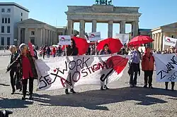 Sex worker movements address issues of labor rights, gender-related violence, social stigma, migration, access to health care, criminalization, and police violence and have evolved to address local conditions and historical challenges.[1][2] Although accounts of sex work dates back to antiquity, movements organized to defend sex workers' rights are understood as a more recent phenomenon. While contemporary sex worker rights movements are generally associated with the feminist movement of the 1970s and 1980s in Europe and North America, the first recorded sex worker organization, Las Horizontales began in 1888 in Havana, Cuba.[1]