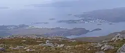 ![]() Beinn na Caillich (l) and Sgùrr na Coinnich (r), seen above the town of Broadford from the west. | |