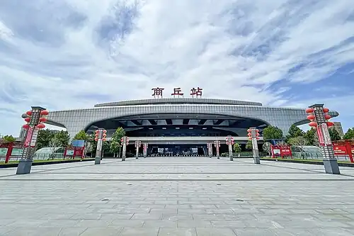 The Shangqiu railway station (Chinese: 商丘站) is a railway station on Longhai railway and Xuzhou–Lanzhou high-speed railway in Shangqiu, Henan, China.