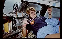 Each of the new astronauts specialized in certain aspects of the Space Shuttle program, providing astronaut support and input. Lucid was involved with Spacelab 1 crew training, and the development of the Shuttle Avionics Integration Laboratory (SAIL) at JSC and Rockwell International's Flight Systems Laboratory (FSL) in Downey, California. She also worked on the Hubble Space Telescope and rendezvous proximity operations.[28] She was at Edwards Air Force Base as a member of the exchange crew for the landing of the STS-5 mission in November 1982. The exchange crew took over from the flight crew after they had landed, and handled the post-flight activities.[29] She was an astronaut support person (ASP) at the Kennedy Space Center (KSC) for the STS-8 mission in August 1983.[30] Also known as a "Cape Crusader", an ASP was an astronaut who supported vehicle and payload testing at KSC, and strapped the flight crew into their seats before takeoff.[31] For the STS-41-B mission in February 1984 she was the backup ASP and once again a member of the exchange crew.[32]