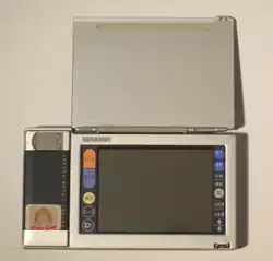 SL-C700 (Corgi), a clam-shell model and the first PDA to use Sharp's "System LCD". Based on the Intel XScale PXA250 400 MHz processor, sold only in Japan. (2003)