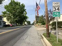The primary means of travel to and from Sharpsburg is by road. The two main highways serving the town are Maryland Route 34, which follows Main Street, and Maryland Route 65, which ends at the intersection of Main Street and Church Street. MD 34 extends eastward to Boonsboro and continues westward to the Potomac River, where it crosses into Shepherdstown, West Virginia, as West Virginia Route 480. MD 65 proceeds northward to a junction with Interstate 70 and then continues to its terminus in Hagerstown.