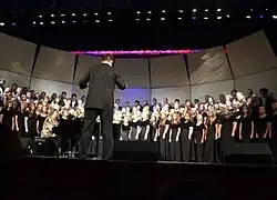 The Madrigal choir, the advanced mixed choir, is most featured during the annual Madrigal Dinner, and is hired to sing at various functions around town throughout the year.[6] In 2016, the Madrigal Choir completed in the small choir division of the Golden State Competition and won 5th place.