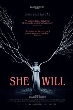 She Will is a 2021 British psychological horror drama film co-written and directed by Charlotte Colbert in her feature directorial debut.[1] The film was produced by Jessica Malik and Bob Last, with Dario Argento and Edward R. Pressman among the executive producers.[2] The film stars Alice Krige, Kota Eberhardt, Rupert Everett and Malcolm McDowell, with John McCrea, Amy Manson, Jonathan Aris and Daniel Lapaine.