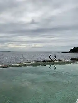 On the weekend of June 4 & 5, 2016 a severe storm caused extensive damage to the walkway between Manly Beach and Shelly Beach. This included considerable damage to the pathway - with large slabs of concrete being lifted and displaced, the complete disappearance of a small toilet block, damage to an iconic sculpture at Fairy Bower pool and large sections of the safety railing being destroyed.[3] Due to safety concerns, a large barrier and warning signs were installed to discourage people from walking along the path until repairs were made. Despite this, many people ignored the warnings and simply climbed around the rocks to get back to the path.[4] The barriers were removed in August 2016, following the completion of remediation work.