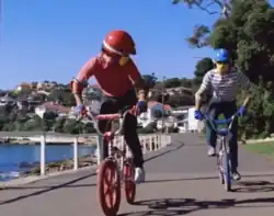 In the opening scene of the 1983 film BMX Bandits, two characters ride their bicycles down the walkway between Manly Beach and Shelly Beach.