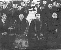 On 1 August 1935, Sheng founded the People's Anti-Imperialist Association in Ürümqi.[55] Garegin Apresov submitted a presentation to the Politburo of the Communist Party of the Soviet Union which accepted the creation of the association on 5 August. The association had to be composed of representatives of the Soviet special services bodies. As the leader of the association, Sheng became one of the main figures of Soviet regional policy. The creation of the association strengthened the Soviet position in Xinjiang.[56]