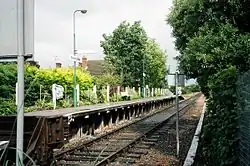 A view of the old platform, intended as a temporary structure when the line was scheduled for closure. This photograph was taken before the restoration of the level crossing, showing the buffer stops that marked the limit of operation at that time.