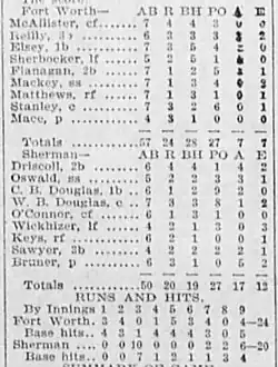 Several different minor league baseball teams were based in Sherman, Texas, intermittently for a total of 14 seasons between 1895 and 1952.[1]: 100 These teams won one championship, shared; that of the Texas Association in 1923.