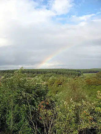 During the Second World War parts of Sherwood Forest were used extensively by the military for ammunition stores, POW camps and training areas.[33] Oil was produced at Eakring.[34] After the war large ammunition dumps were abandoned in the forest and were not cleared until 1952, with at least 46,000 tons of ammunition in them.[35]