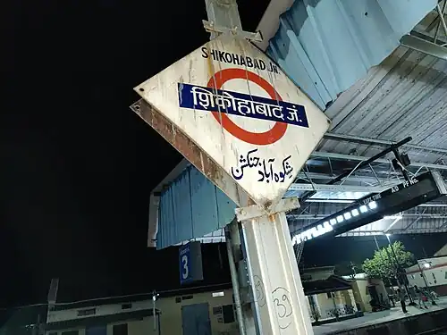 ![]() Shikohabad railway station board on platform 4 | |||||