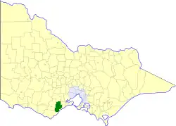 The Shire of Winchelsea was a local government area about 110 kilometres (68 mi) southwest of Melbourne, the state capital of Victoria, Australia. The shire covered an area of 1,294 square kilometres (499.6 sq mi), and existed from 1860 until 1994.