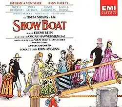 Show Boat is a 221-minute studio album of Jerome Kern's musical, performed by a cast headed by Karla Burns, Jerry Hadley, Bruce Hubbard, Frederica von Stade and Teresa Stratas with the Ambrosian Chorus and the London Sinfonietta under the direction of John McGlinn. It was recorded from June 1 to August 31, 1987 at Abbey Road Studios in London.