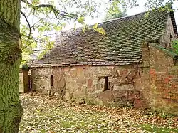 At a weekly rate of £7.5 the total arrears amounted to £108.10. There are many interesting buildings in the parish. Some around the church are typical Arden timber-framing with brick in-fill, dating from the 17th century. Others are the Alms Houses, the moated Shustoke Hall, and a Tithe barn at the nearby hamlet of Church End. Joseph Harrison, the early seventeenth-century vicar of Shustoke, appears to have enjoyed some notoriety as a drunkard. The justices of the Warwick quarter sessions at Easter, 1635 record that the late vicar was "a man of very lewd condition, much subject to drunkenness" and ruled that William Bull, his father-in-law, was to be responsible for supporting his surviving wife and child.