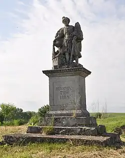 Local legend provides that, while Shvaikivtsi was under Hapsburg rule, an Austrian Royal Dragoon officer died while extinguishing a fire in Shvaikivtsi.[3][4][30][31] Village lore holds that a statue of Saint Florian, patron saint of firefighters, was erected in Shvaikivtsi as a tribute to this officer.[3][30] While the date of the statue's installation is unknown, its inscription provides that it was restored in 1864.[3][30]